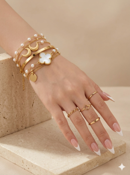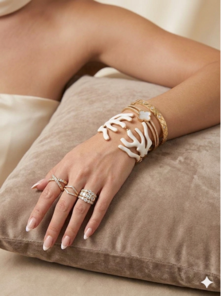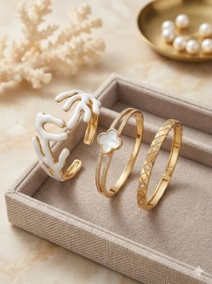 Elegant Gold & White Coral Design Bracelet Set for Women – Luxury Fashion Bangle Set (3 Pieces)