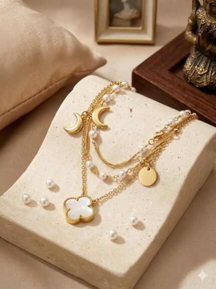 Golden Layered Pearl Charm bracelet for Women