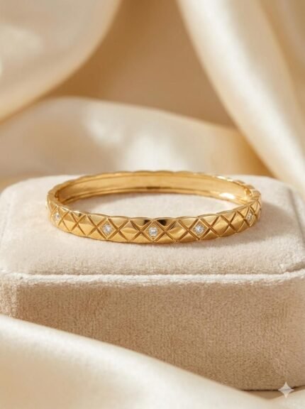 Luxury Gold Textured Bangle with Diamond Accents