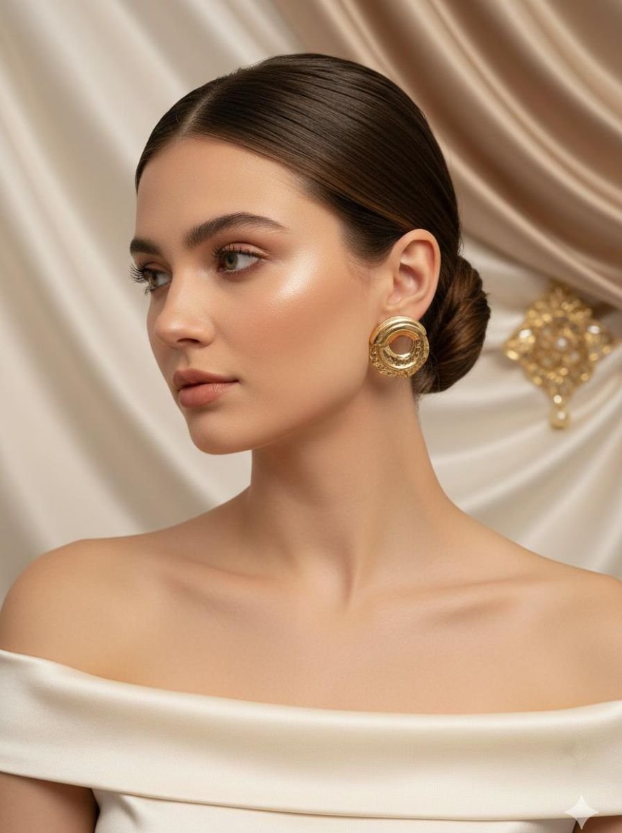 Enhance your style with these Elegant Gold Circle Statement Earrings, designed to bring a bold yet sophisticated touch to any outfit. Featuring a unique circular layered design with a polished gold-tone finish, these earrings create a timeless and luxurious look. Perfect for parties, formal events, or elevating your everyday fashion, they add effortless glamour and confidence to your appearance. ✨