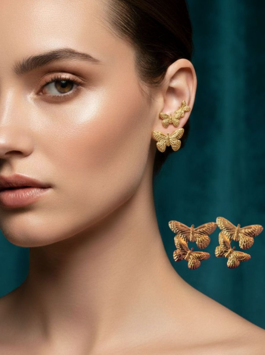 Add a touch of elegance to your jewelry collection with these Luxury Gold Butterfly Drop Earrings. Designed with beautifully detailed butterfly shapes, these earrings symbolize beauty, freedom, and grace. The layered butterfly design creates a stunning statement look that instantly enhances any outfit.