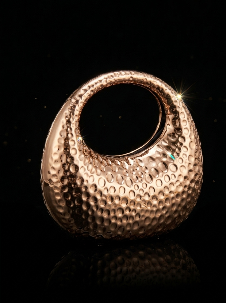 A masterpiece of architectural fashion that blends raw, organic texture with refined geometric precision. The Aurelius is designed for the woman who views her accessories as wearable art.